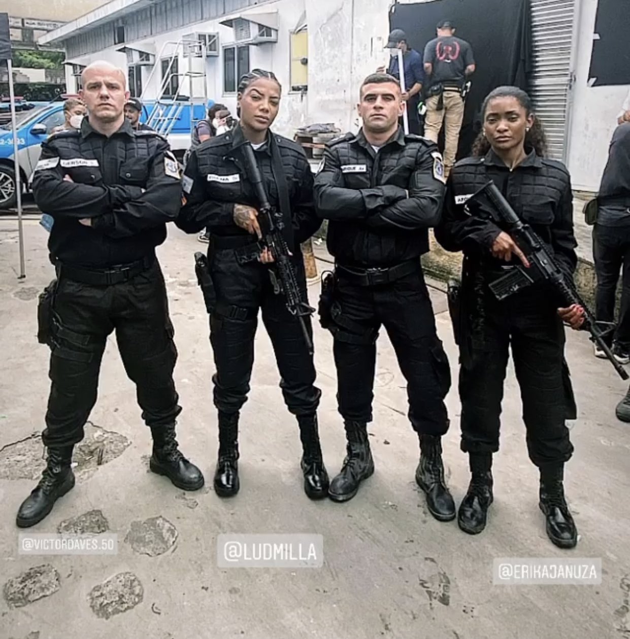 Ludmilla e Érika Januza com parte do elenco de “Arcanjo Renegado 2”. (Foto: Reprodução/Instagram)