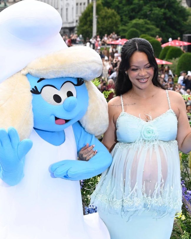 Previous Image Next Image Rihanna on the blue carpet for the world premiere of the movie “Smurfs” in Belgium 🩵✨#Rihanna (2)