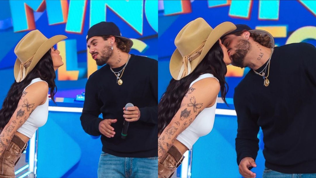 No último domingo (12), o casal protagonizou o primeiro beijo público, durante gravação do programa Domingo Legal, apresentado por Celso Portiolli, no SBT. Os dois participaram do quadro “Torta na Cara”. Na ocasião, Zé Felipe foi direto ao afirmar que está namorando Ana Castela. Por outro lado, a cantora preferiu manter cautela, destacando que ainda não quer “pular etapas” no relacionamento com o cantor. O programa será exibido no próximo domingo (19).