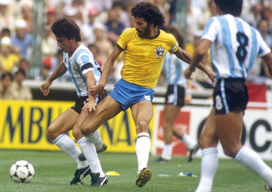 Sócrates em jogo contra a argentina na Copa do Mundo de 1982. (Foto/ reprodução: Placar)