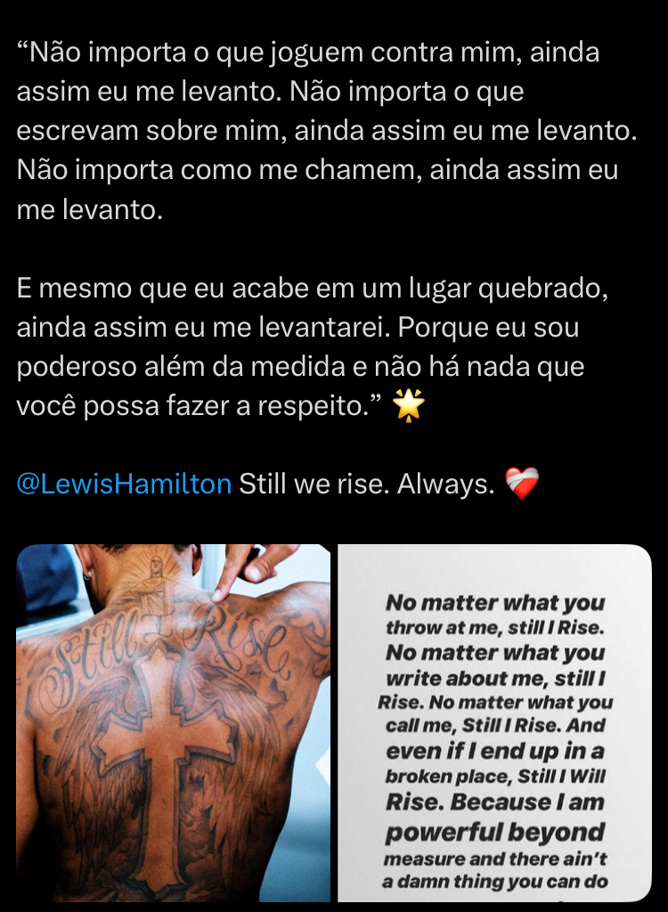 Imagem de pagina dedicada ao lewis Hamilton traduzindo sua postagem (foto:reprodução/x/@lh44news)
