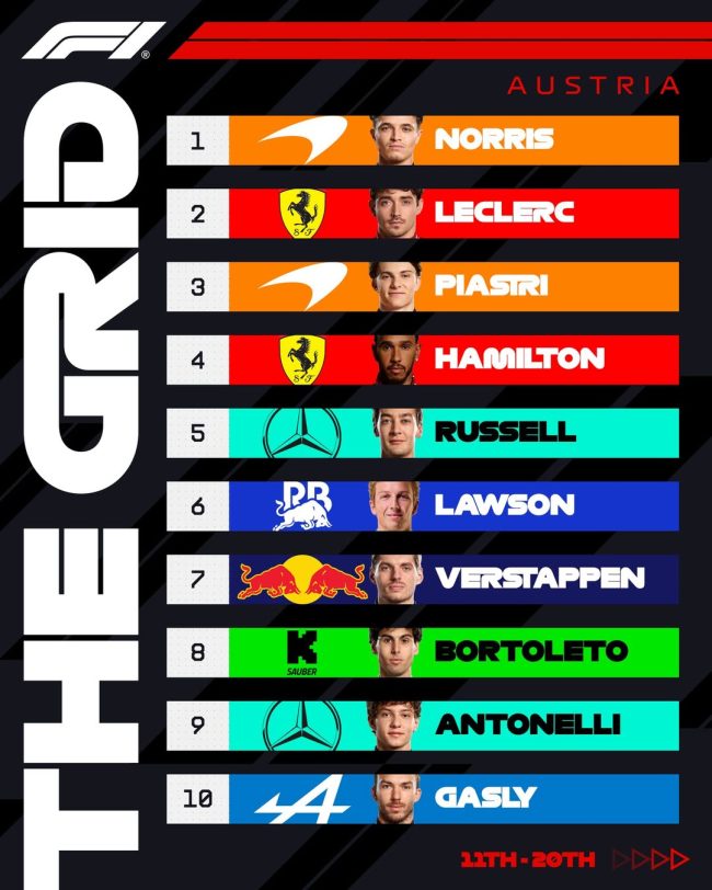 Previous Image Next Image You won’t want to miss this tomorrow! 👀Here’s your intriguing Austrian Grand Prix grid ⬆️#F1 #Formula1 #AustrianGP
