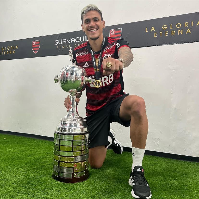 Pedro com a taça da final da Libertadores 2022 (Foto: reprodução/Instagram/@pedroguilherme)