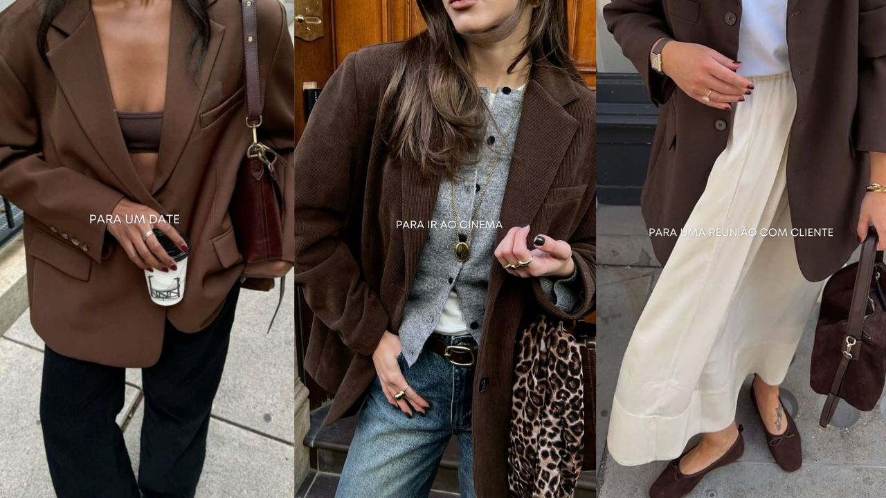 As combinações entre blazer e outras peças do guarda-roupa está se tornando cada vez mais sinônimo de elegância despretensiosa e exploração da criatividade. Após perder espaço nas ruas e passarelas, a peça volta com força para 2026. O blazer marrom promete ser elegante, manter seu estilo e estar apropriado com os diversos ambientes.
