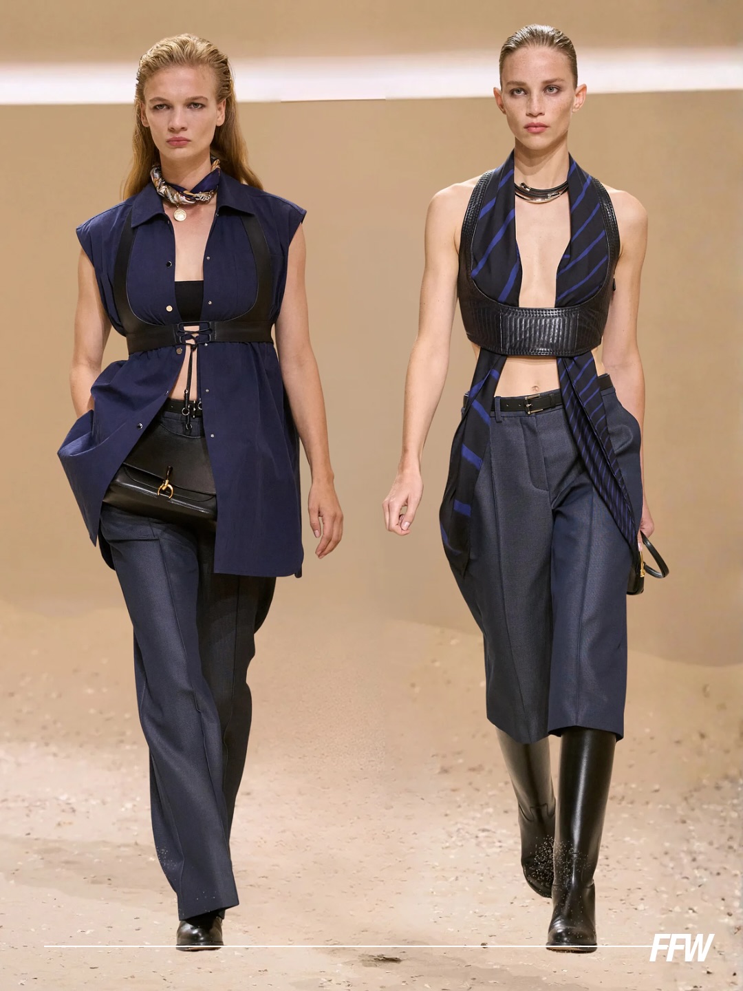 Modelos desfilando para Hermès no Paris Fashion Week. (foto: reprodução/Insatgram/@ffw)