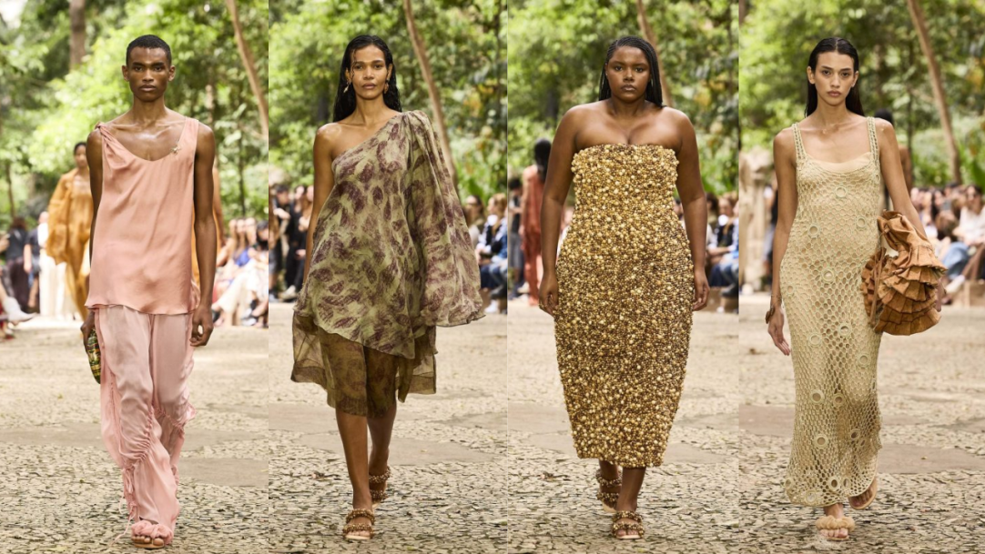 Designer aposta em fibras nativas e tingimentos botânicos para pintar sua coleção verão e apresenta parcerias para produção escalável durante o SPFW 26
