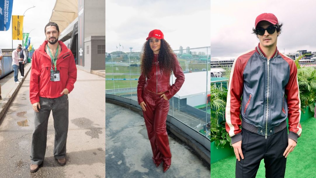 Gabriel Leone, que interpretou recentemente Ayrton Senna na série homônima sobre o ídolo da Fórmula 1, escolheu jeans escuros e jaqueta vermelha para a ocasião. A peça apareceu também nas produções de Bella Campos, combinada a uma calça de couro no mesmo tom e na do ator Pedro Waddington.