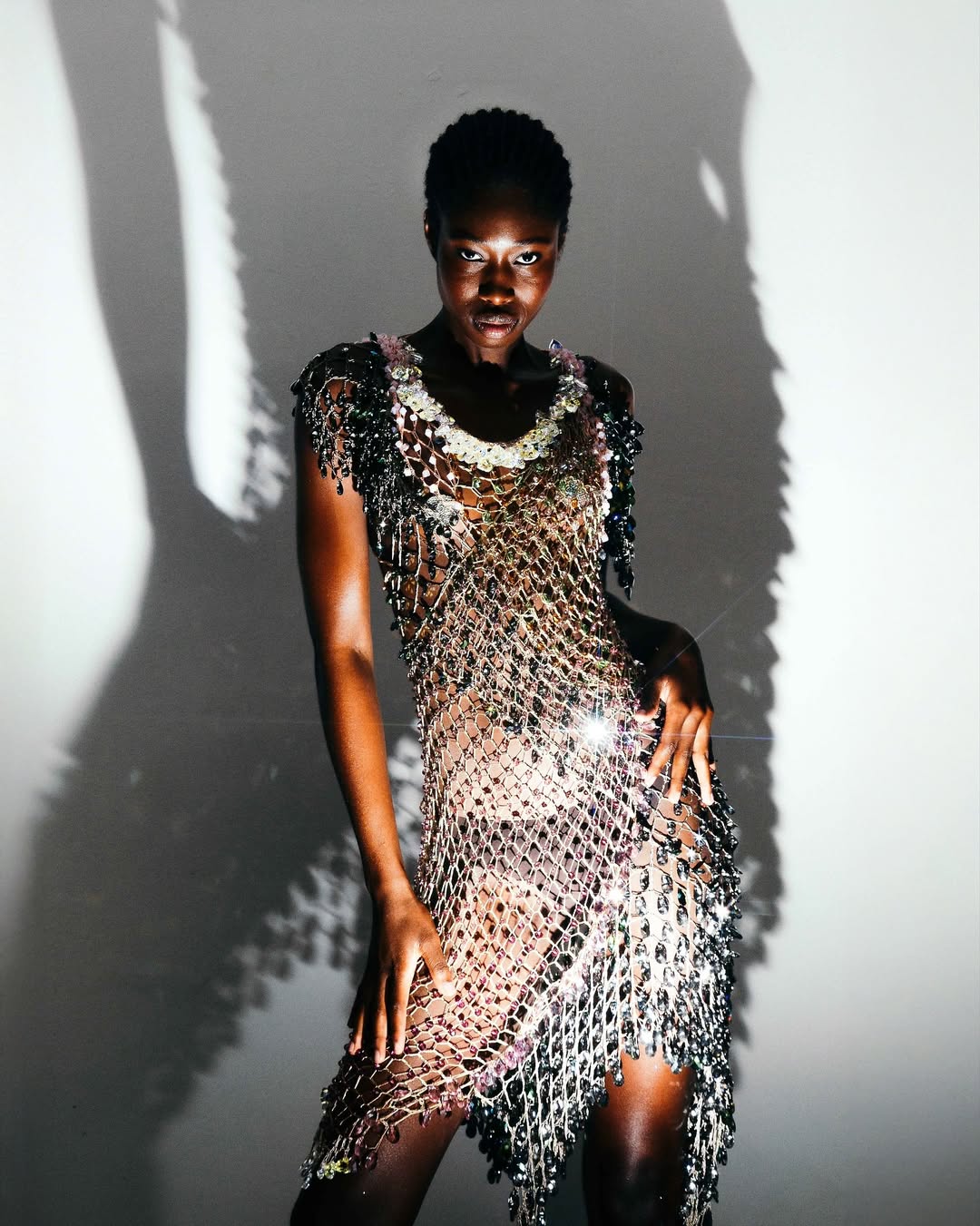 Modelo usa vestido de rede e pedras de Gustavo Silvestre (Foto: reprodução\Instagram\@feliperufinno)