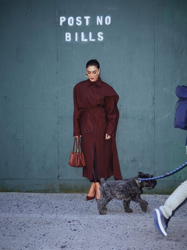 Em Nova York, Juliana Paes surge novamente com um visual que combina sobriedade e sofisticação, posando com um trench coat clássico nas ruas da cidade. A atriz destaca-se com um casaco de corte estruturado em tom neutro, complementando o look com acessórios discretos e uma postura confiante. A cena destaca a habilidade de Juliana em transitar entre o glamour do universo da moda e a autenticidade do estilo urbano, ganhando também destaque no cenário internacional.