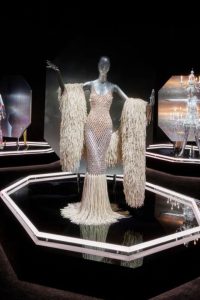 Entre os destaques da mostra estão looks usados por Beyoncé, Marilyn Monroe, Nicole Kidman, Katy Perry, Miley Cyrus, Harry Styles e Jennifer Lopez. Cada peça carrega não apenas o esplendor dos cristais, mas também a energia de performances e momentos que marcaram a cultura pop.