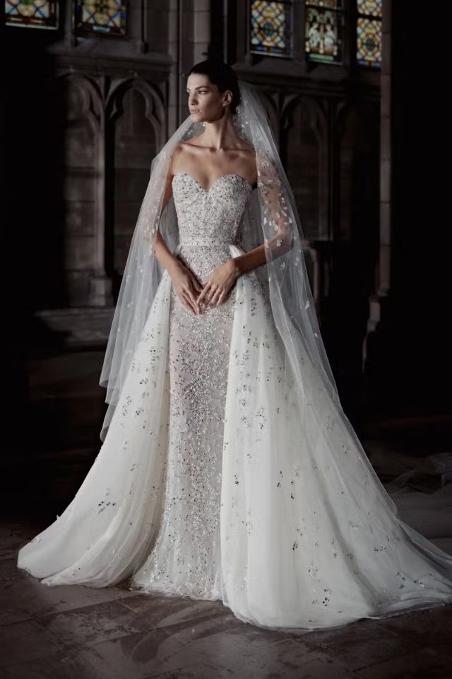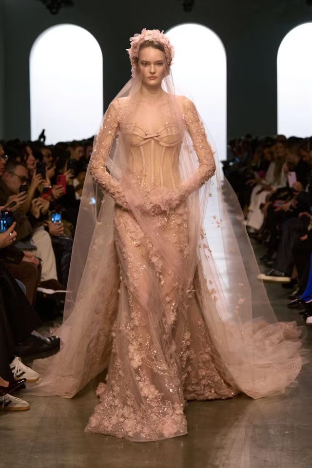 Elie Saab, Reem Acra e Zuhair Murad, todos do Líbano, também são nomes fortes. Eles já vestiram Taylor no passado e têm coleções recentes com vestidos de noiva repletos de bordados, flores tridimensionais e silhuetas românticas que se encaixam perfeitamente ao estilo dela.