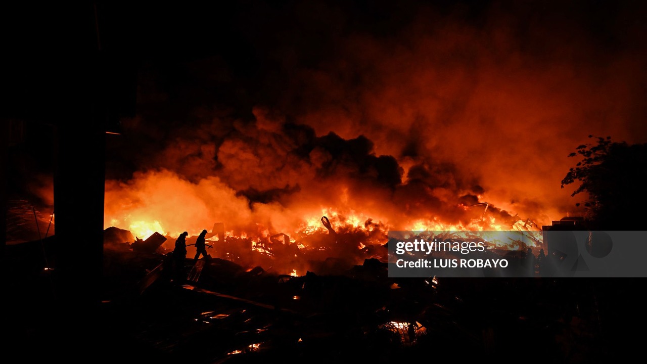 Incêndio no Parque Industrial (Foto: reprodução/Luiz Robayo/Getty Images Embed)